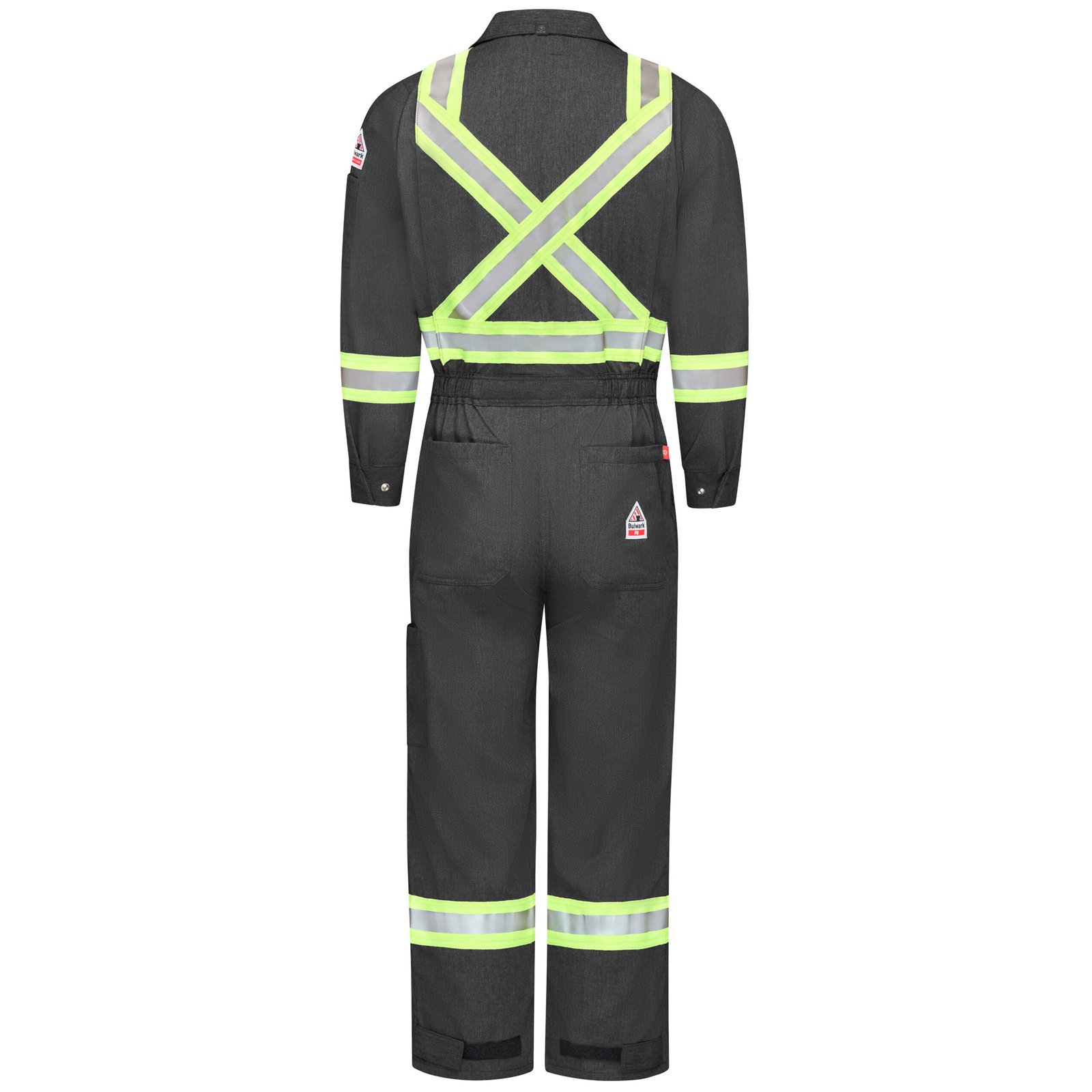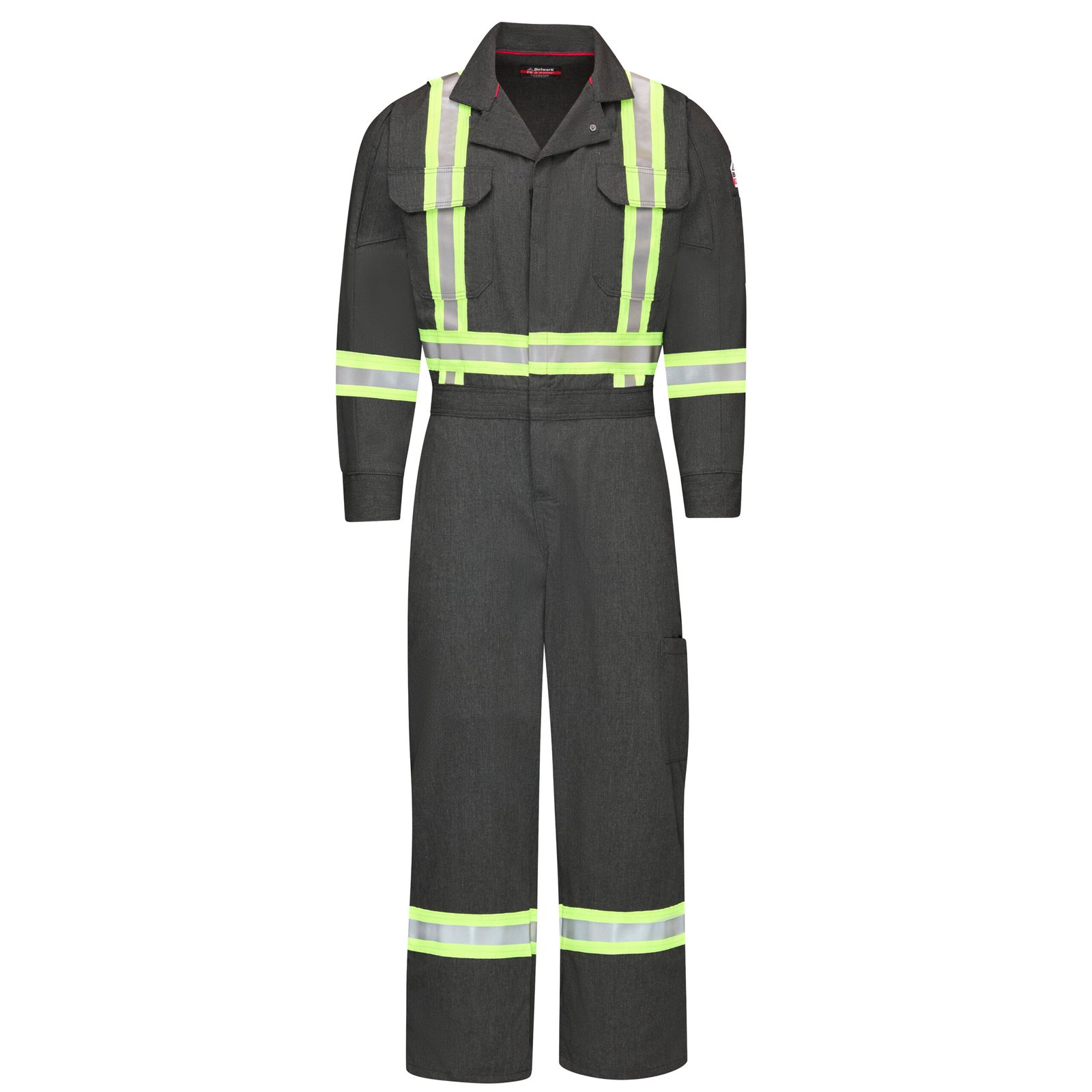 The iQ Series® Mobility Coverall was built for comfort. The 5.5 oz. fabric with CAT2 protection feels light and smooth. The mobility design gives plenty of room for movement. This premium coverall features a patented sleeve pleat giving the arm full range of motion. Special design features in the lower torso give the wearer room to squat. The full design comes together to help you move, bend and work in comfort. 360° visibility with front and back 2 ½” yellow/silver/ yellow reflective striping which makes this coverall CSA Z96 Class 1 Level FR compliant.