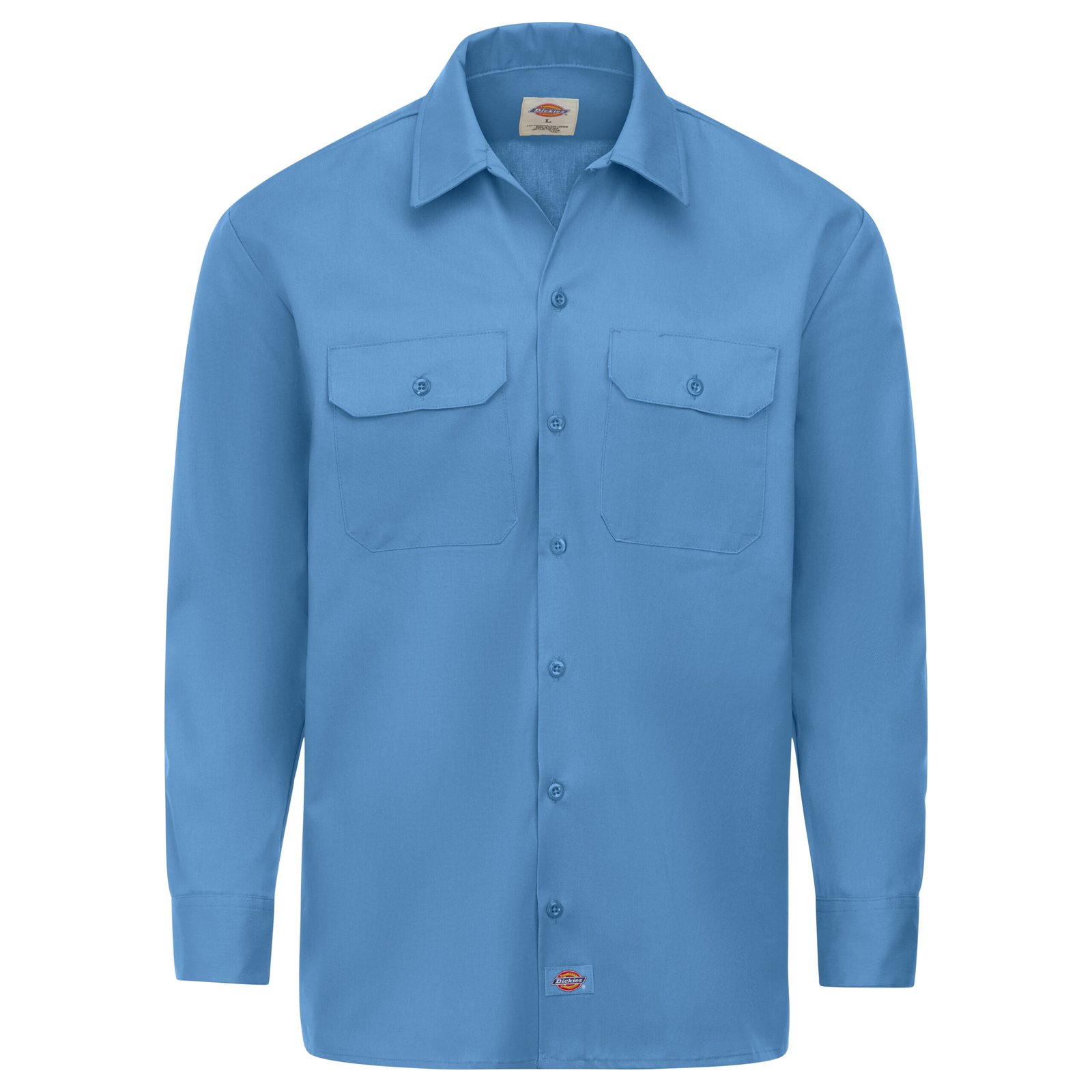 Dickies Long Sleeve Traditional Work Shirt features a generous cut through the shoulders and chest to give you plenty of room for movement. It has a square tail design that looks good tucked or untucked. It’s crafted from our sturdy polyester/cotton twill work cloth, woven for durability and longevity. This shirt will also help you stay dry with its moisture-wicking properties. For added utility, two chest flap pockets with button closure provide storage on the job. Other details include pencil division on the left pocket, a standard spread collar and dyed-to-match melamine buttons.