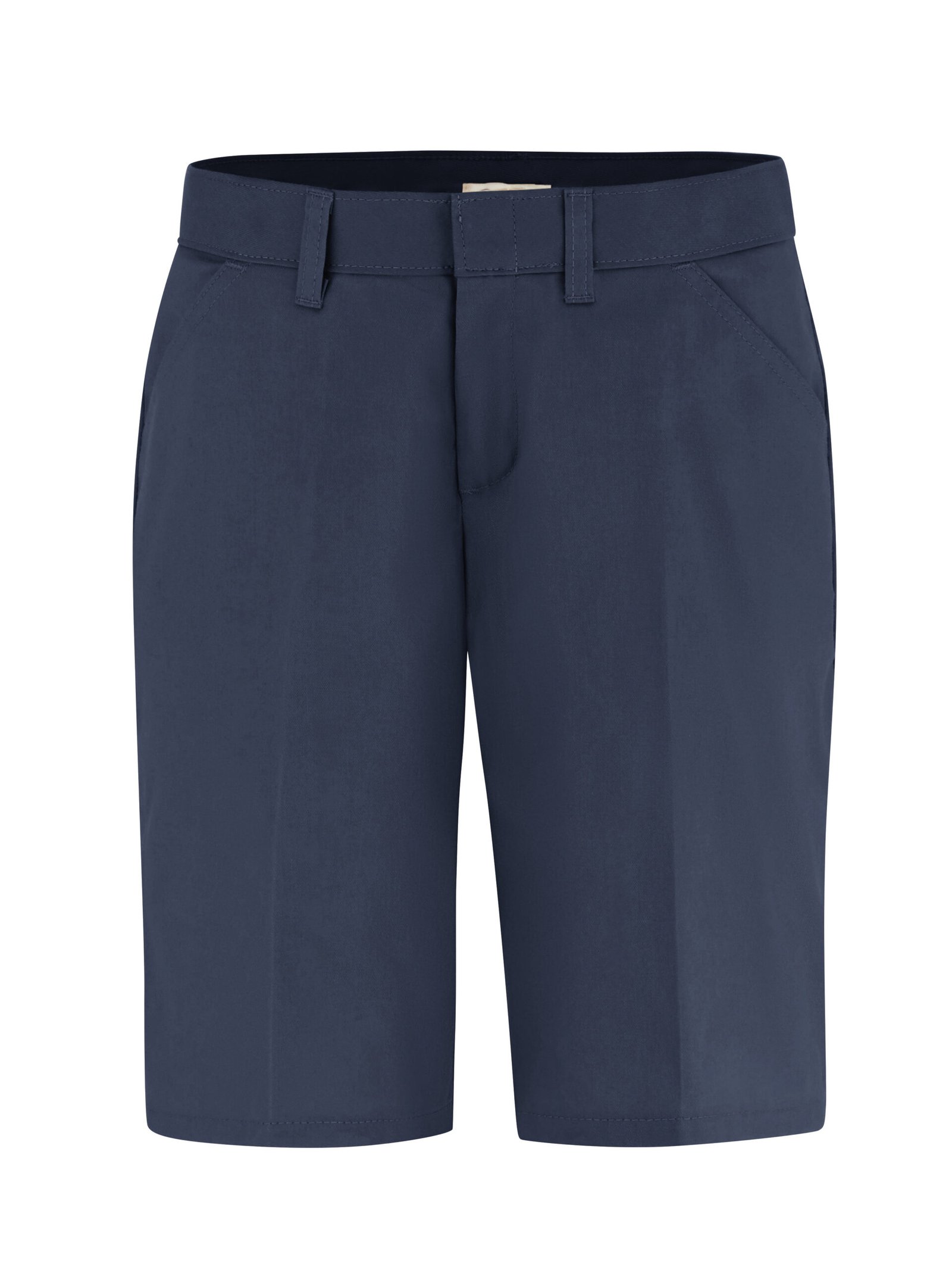 Dickies Women’s 10″ Relaxed Fit Flat Front Short sits slightly below the waist and has a stretch interlining in the waistband for expanded comfort in the waist. It features wrinkle resistant, StayDark® and stain release technology. The short is made with two front pockets and a right back-welt pocket for utility.