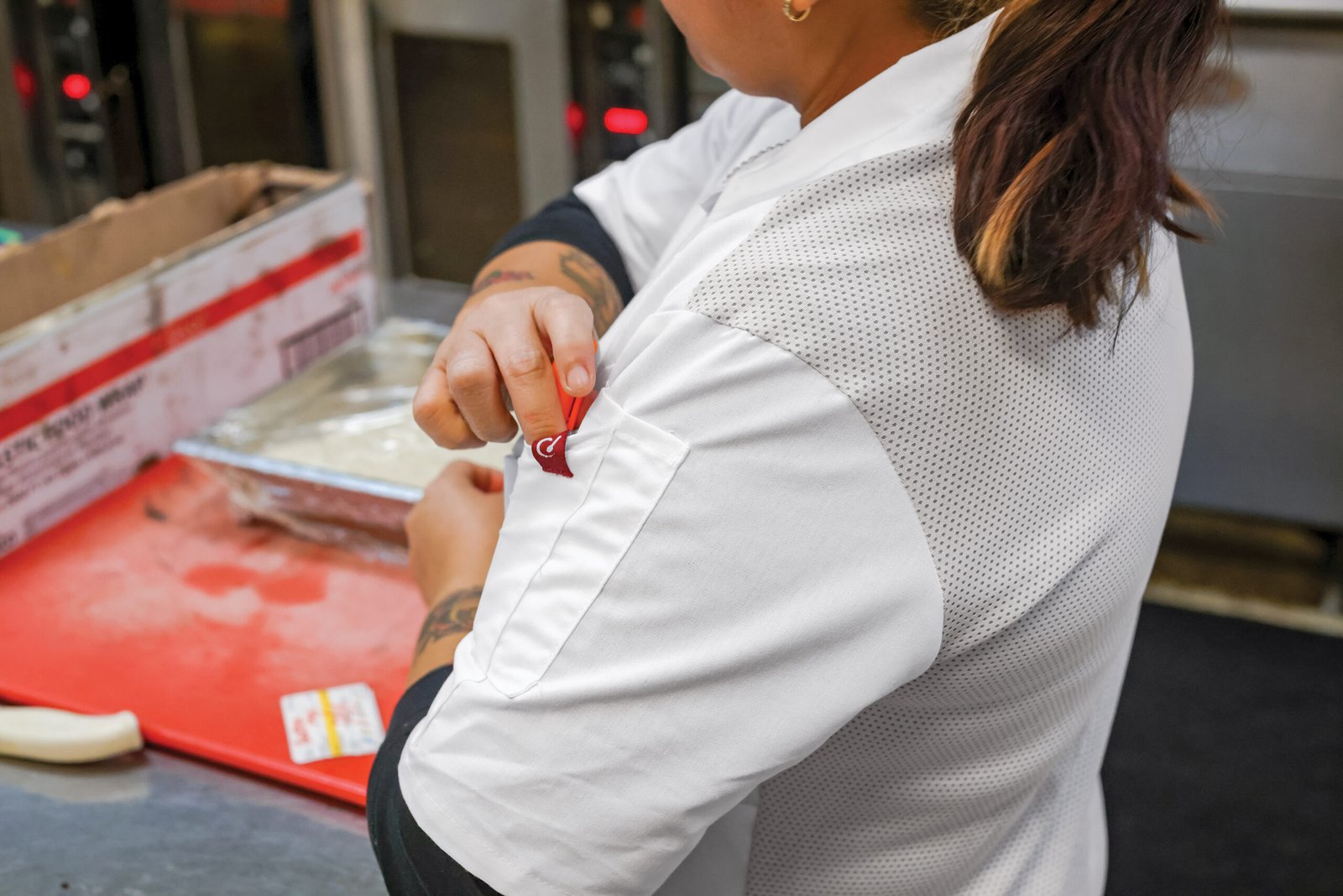 Exclusive OilBlok Technology makes the Women’s Airflow Cook Shirt a stand-out in the kitchen. Your go-to utensils will always be close at hand thanks to an angled chest pocket and dual thermometer sleeve pocket. Not to mention you’ll stay cool under pressure with a lightweight and breathable full mesh back.
